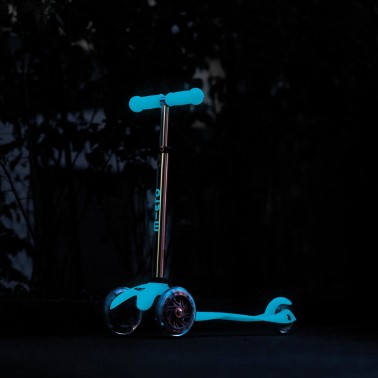 Nella versione GLOW LED, con il buio, pedana, manubrio, freno e logo brillano senza bisogno di batterie. La luce del sole o luce naturale caricano le parti luminose e trasformano il monopattino in uno spettacolo di luce, oltre a rendere ogni uscita in monopattino più sicura anche al buio. Mini Micro Deluxe Glow è anche dotato di ingegnose ruote LED che sfruttano l’energia generata dal movimento per illuminarsi attraverso un meccanismo a dinamo, aumentando la visibilità e il divertimento.